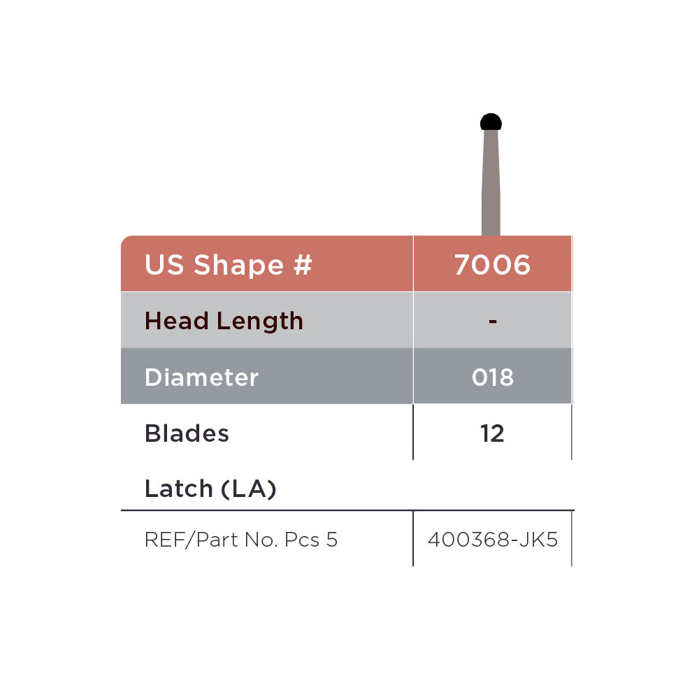 Hårdmetalbor til pudsning, guldfarvede, 12-bladede, til RA, rund, 7006/018, hovedhøjde 1,8 mm.