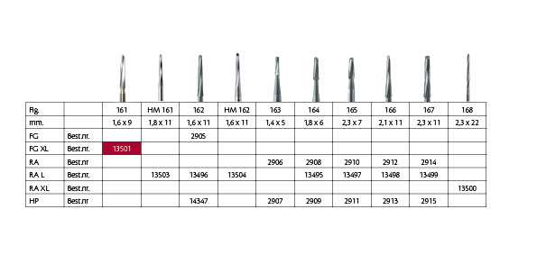 Knoglefræser, Lindemann, stål, til FG med forlænget skaft, fig. 161, 9,0 x 1,6 mm.