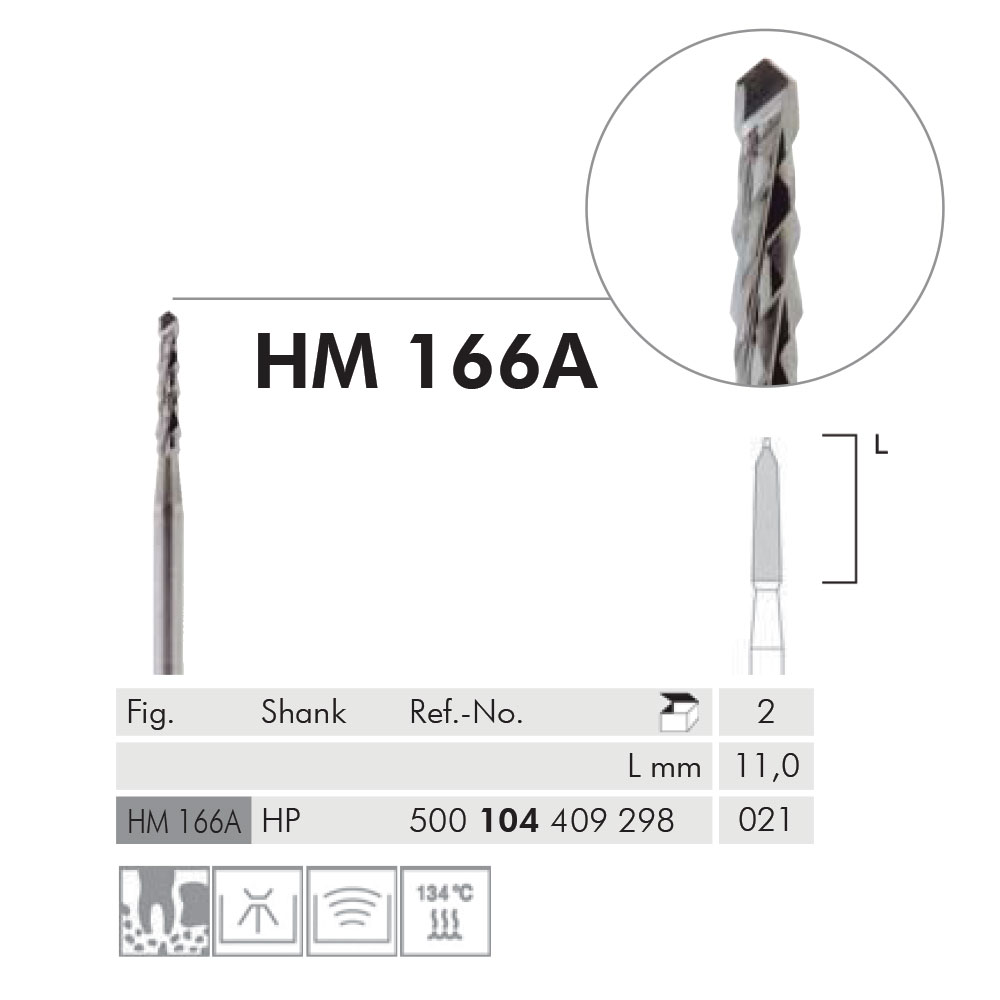 Knoglefræsere i hårdmetal, til HP, 166A, uden tværhug, 2,1 x 11 mm.