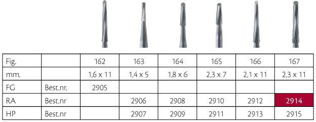 Knoglefræsere i hårdmetal, til RA, 167, 2,3 x 11 mm.