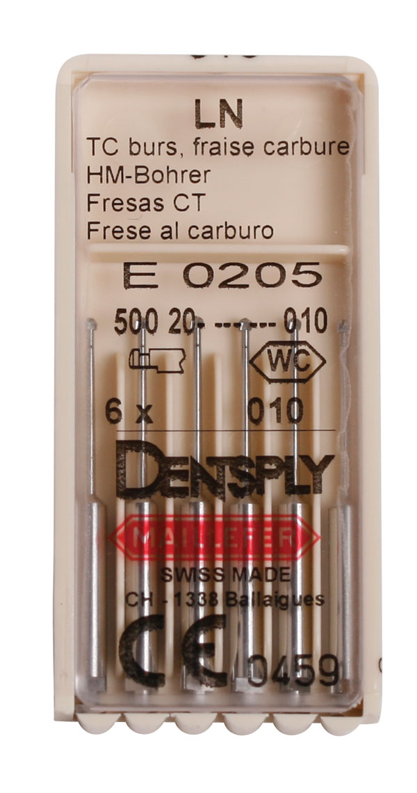 Hårdmetal rosenbor med ekstra lang, slank hals til fx lokalisering af kanalindgange ved rodbehandling samt nedboring ved knækket stift for at løsne denne, til RA, str. 010.
