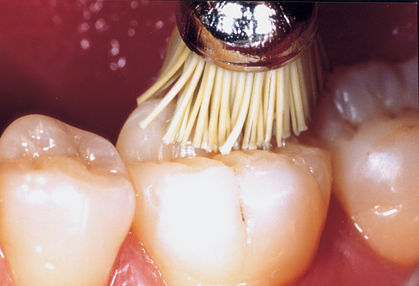 Børster med indbyggede pudsepartikler til pudsning af posteriore okklusale restaureringer af komposit, kompomerer og keramik, kan autoklaveres, monteret til RA, regular kop.