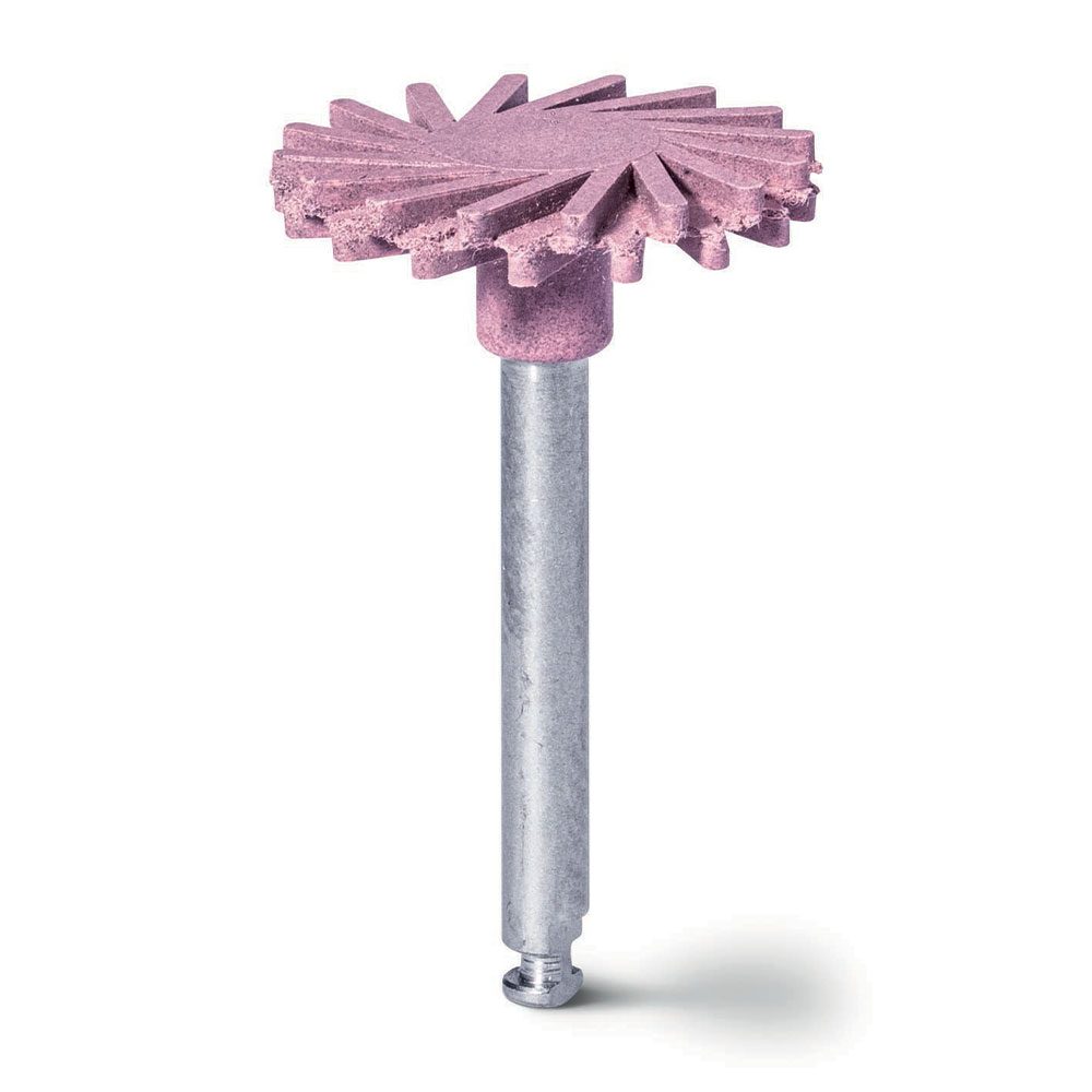 Silikonepolerere til komposit, imprægneret med diamantpartikler, monteret til RA, Twist Disc, pink til forpolering, kan autoklaveres.