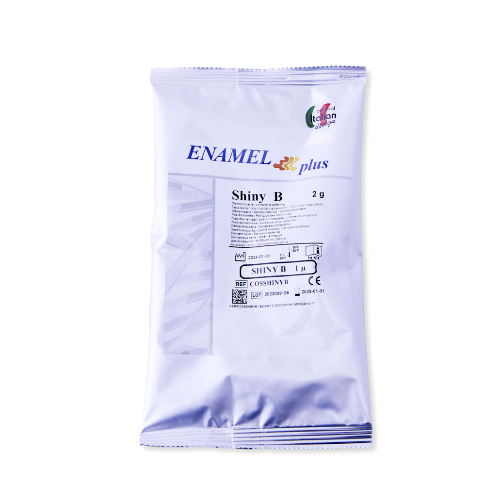 Diamantpudsepasta til forpolering af komposit, Shiny B, 1 micron, anbefales at bruges med et poleringshjul af gedehår.