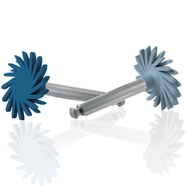 Poleringshjul/spiraler til RA, til forpolering og højglanspolering af komposit, mørkeblå (medium) og lyseblå (fin),14 mm, kan autoklaveres og genbruges.