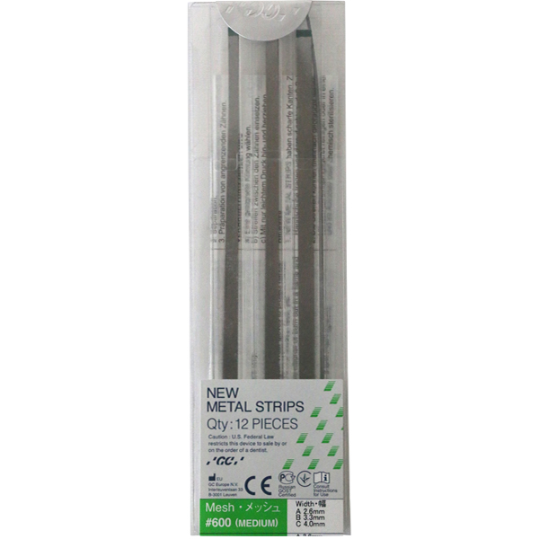 Tynde, fleksible stålstrips til approksimal pudsning fx efter cementeringer af porcelænsrestaureringer, grønne, medium, 70 micron, #600 Mesh, til finishering, kan autoklaveres.