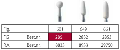 Slibesten til komposit, til FG, nr. 601, XF ekstra fin, hvid, rund, str. 030. Omdrejninger max 120.000/min.