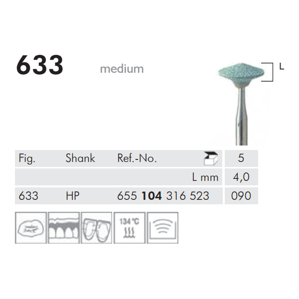 Slibesten, grønne, til HP, fig. 633, linse-formet, diameter 090 (9 mm), højde 4 mm.