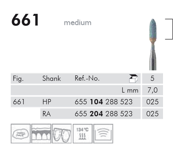 Slibesten, grønne, til RA, fig. 661, flammeformet, diameter 2,5 mm, højde 7 mm.