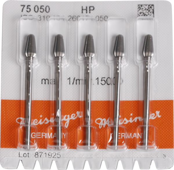 Fræser i stål, omv. pærefacon, nr. 75/050, til HP. Kan både bruges som akrylfræser og til operationer.