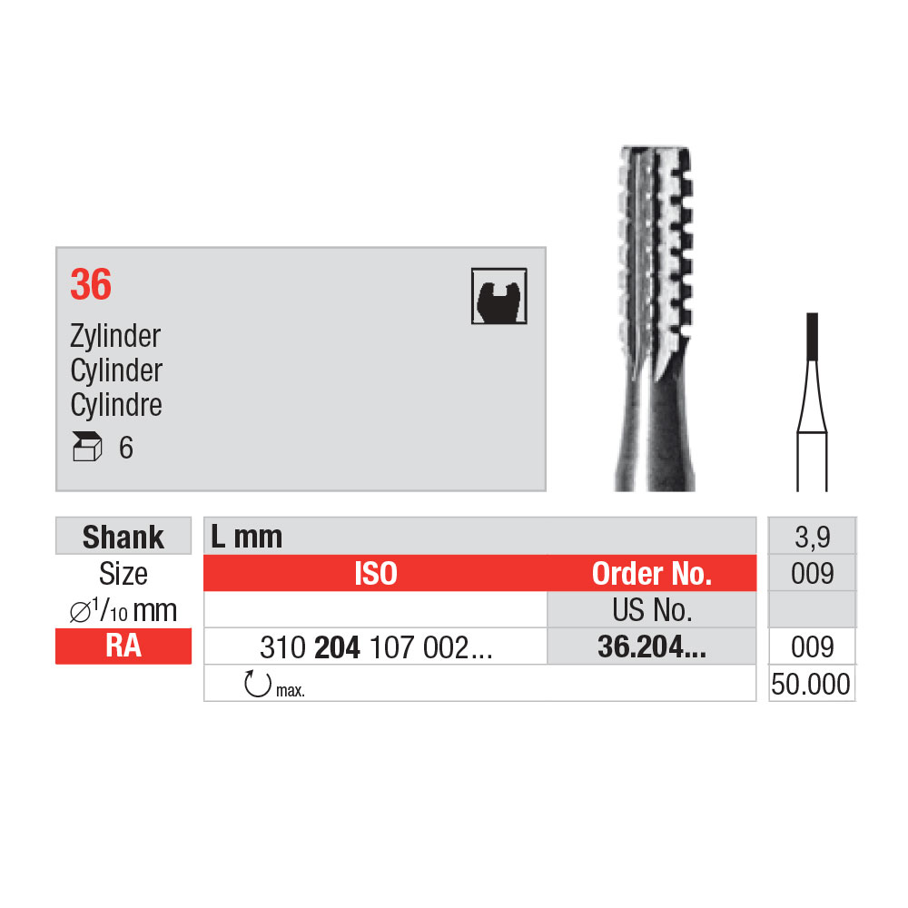 Stålbor til præparation, fissur, str. 009, til RA.