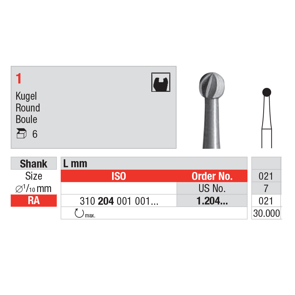 Stålbor til præparation, rosen, str. 021, til RA.