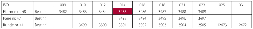 Finerbor til pudsning i stål, flammeformede, str. 014, til RA.