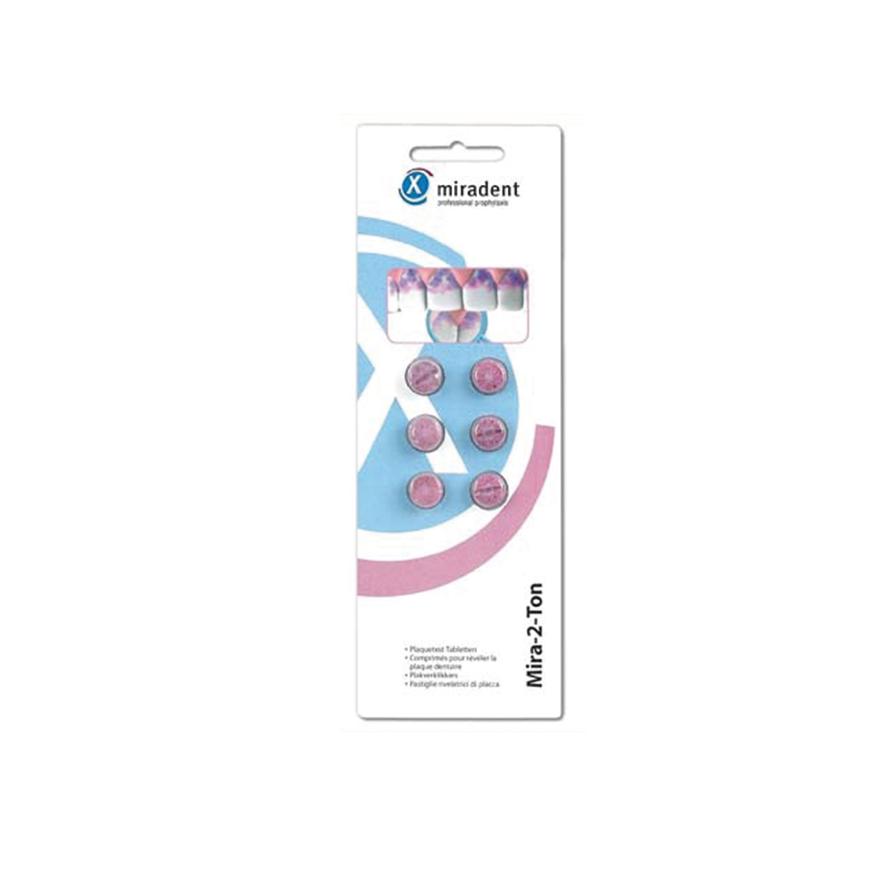 Tyggetabletter, der synliggør plak. Farven er nem at fjerne ved almindelig tandbørstning. Ældre plak vises med blå farve, nyere plak farves pink. Er pakket enkeltvis. En tablet kan deles i 2.
