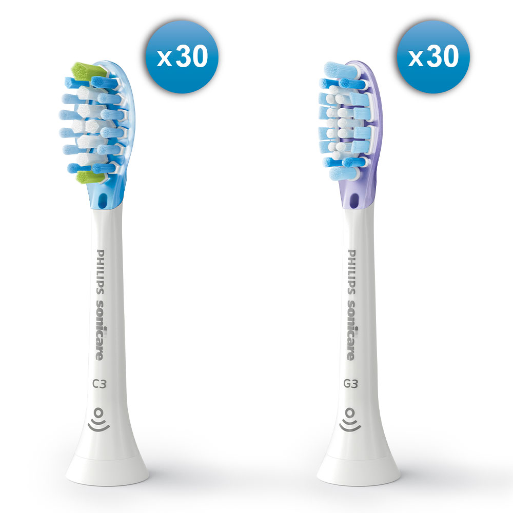 Bulk pakning med Philips børstehoveder, G3 Premium Gum Care og C3 Premium Plaque Defence.