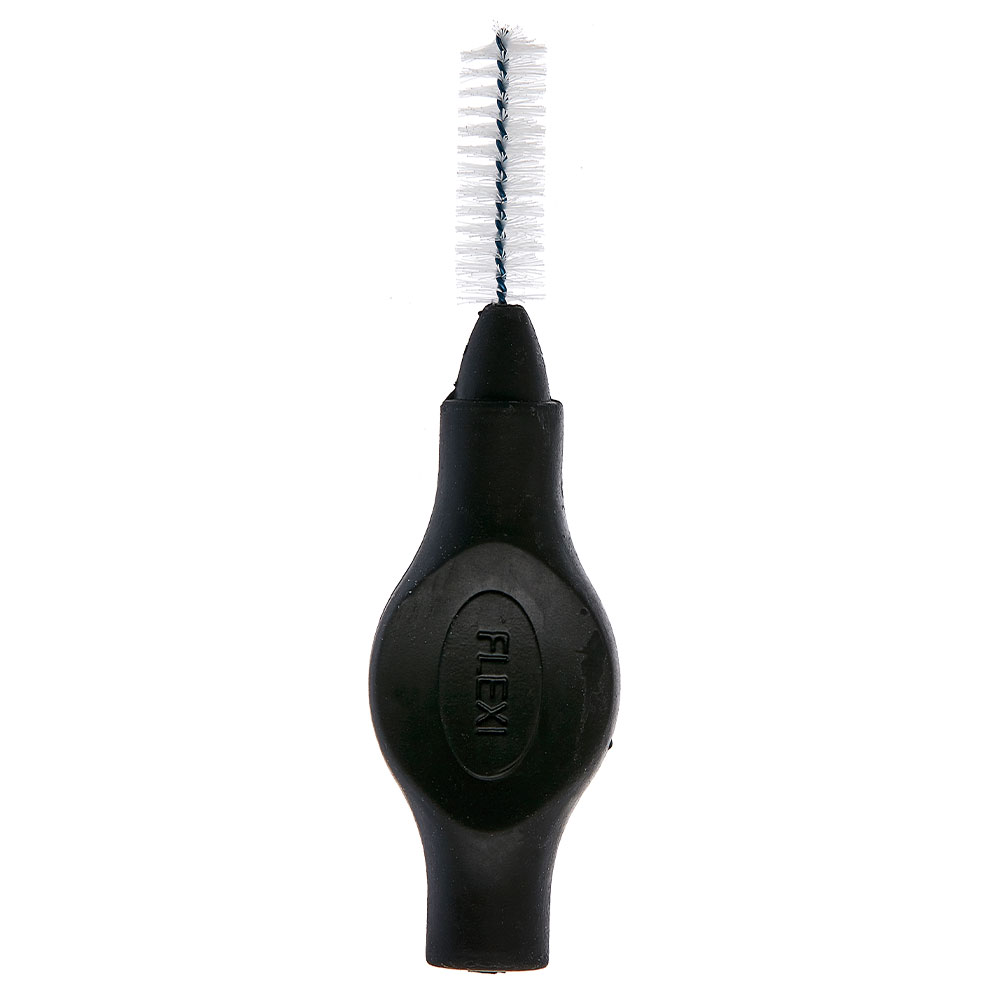 Interdentalbørster med kraftigt, bredt, fleksibelt silikonehåndtag, Flexi UltraSoft, sort, Black, PHD (Passage Hole Diameter) 1,6 mm, ISO-str 5, trådtykkelse 0,70 mm, cylindrisk, i boks som passer til Tandex display.