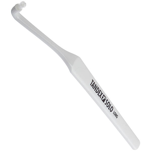 Tandbørster, SOLO Long, 1 børstebundt, specielt udviklet til optimal pleje af kritiske steder, særligt egnet til tandkødsranden, store tandmellemrum, de bagerste kindtænder, tandbroer, bøjler, tandfrembrud, dybe tandkødslommer samt efter operation og i forbindelse med implantater.