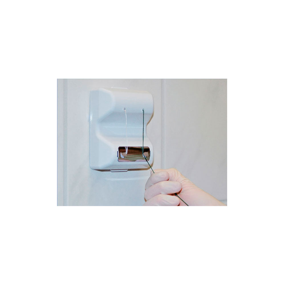 Tandtrådsdispenser med takket metal afrivningsplade, kan monteres på væggen, med plads til 2 ruller tandtråd, refiller med 100 eller 200 m trandtråd passer heri. Pakke med 2 ruller tandtråd med mintsmag. Indeholder IKKE fluorstofferne PTFE eller Teflon.