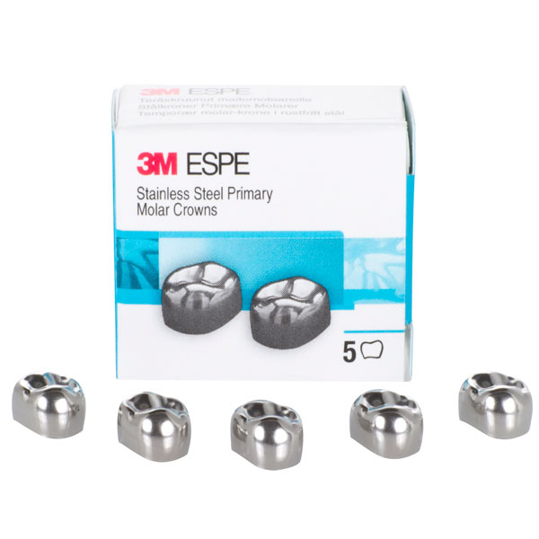 Stålkroner til første primære molar, anatomisk udformede kroner, der er nemme at tilpasse og adaptere, kan anvendes til kort- og langtidsprovisorium på primærer molarer, er præformede ved den cervikale kant for at give god retention og tilpasning. Str. D-LR-7. Diameter mesial-distal: 9,3 mm.