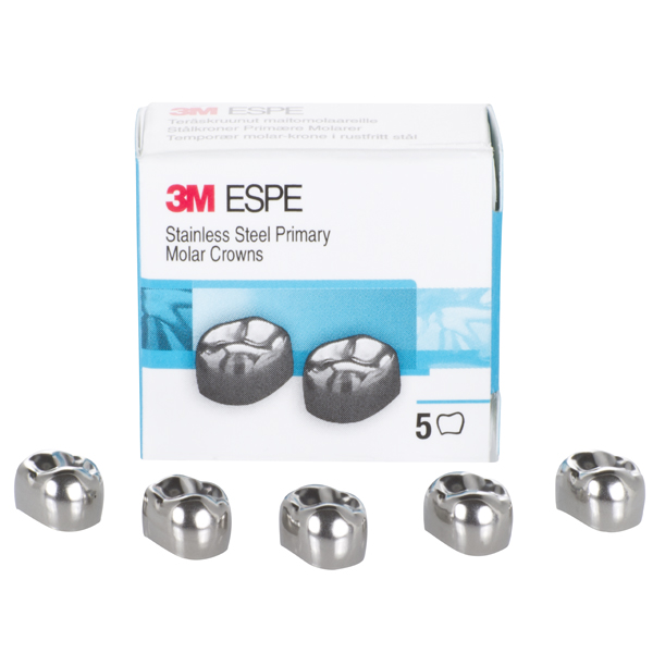 Stålkroner til primære molarer, anatomisk udformede kroner, der er nemme at tilpasse og adaptere, kan anvendes til kort- og langtidsprovisorium på primærer molarer, er præformede ved den cervikale kant for at give god retention og tilpasning. Str. E-UR-6. Diameter mesial-distal: 10,8 mm.