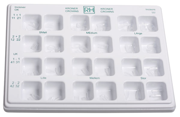 3 stk. i hver af størrelserne lille, mellem og stor til 1+, +1, 2+, +2, 1-, -1, 2- og -2, i alt 72 stk.