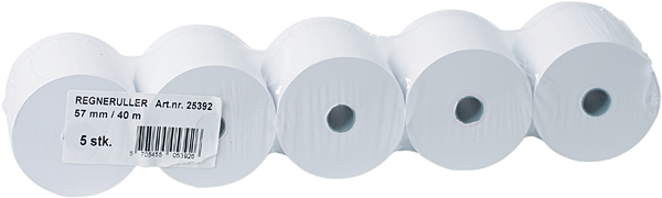 Papirruller til regnemaskinen, 57mm bred, ruller med 40 m.