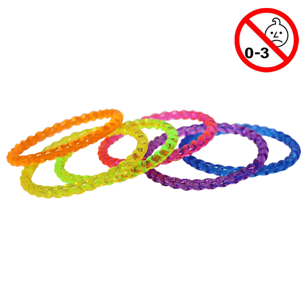 Legetøjsarmringe i hård plast, diameter 5,7 cm, assorterede neonfarver, ikke egnet til børn under 3 år.
