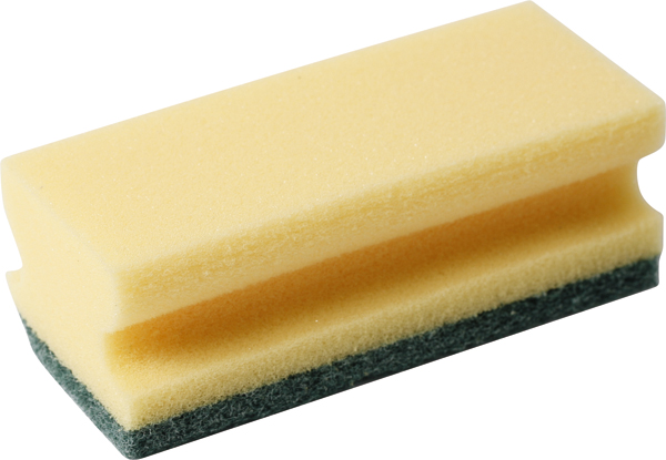 Rengøringssvamp, grov, grøn med greb af polyester.