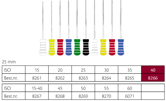 K-File NiTiflex file, nikkeltitanium med større flexibilitet, ref. A012N, farvekodede plastgreb, 25 mm, nr. 40, sort.