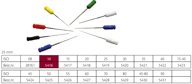S-file, dobbeltskærende file med S-formet tværsnit og grebsvenligt skaft, 25 mm, nr. 10, lilla. Sterilt enkeltpakkede.