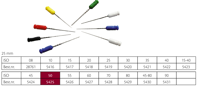 S-file, dobbeltskærende file med S-formet tværsnit og grebsvenligt skaft, 25 mm, nr. 50, gul. Sterilt Enkeltpakkede.