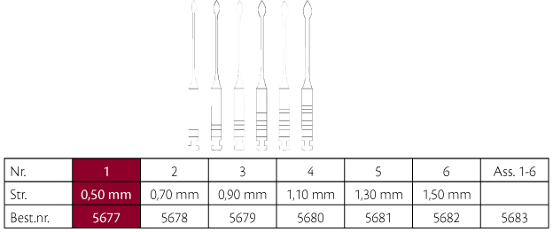 Gates Glidden bor, anvendes til åbning af rodkanalindgange og til crown-down præparationer af rodkanaler, til RA, lang, fuld længde af boret er 32 mm, hoved og hals er 19 mm. Nr. 1 Ø 0,5 mm.
