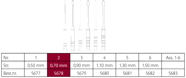 Gates Glidden bor, anvendes til åbning af rodkanalindgange og til crown-down præparationer af rodkanaler, til RA, lang, fuld længde af boret er 32 mm, hoved og hals er 19 mm. Nr. 2 Ø 0,7 mm.