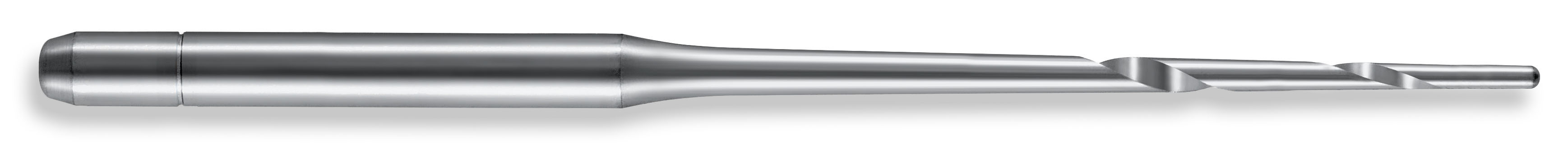 Bor til fjernelse af plastkernen i termoplastiske obturatorer før udboring til stift, langt lige glat bor med indfræset piralfure, til FG, kan også bruges i opgearingsvinkelstykke ved max 300.000 rpm, uden vandspray. OBS: Pas på at boret ikke bliver for varmt. ref. A0051/31MM/005, str. 1, 0,5 mm x 31 mm. Forbor i rustfrit stål til indledende udboring, hvis der er rodfyldt med obturatorer fra f.eks. Thermafil eller Soft-Core. Anvendes hvis obturatoren skal udbores ved evt. rodstift behandling.