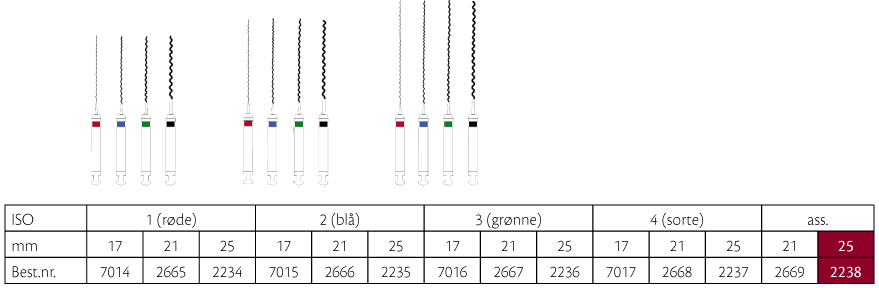 Rodfyldningsspiraler, Lentulo, ref. A0022, metalskaft, 25 mm, ass.nr. 1-4.