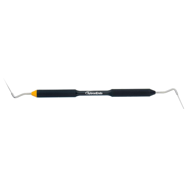 Rodstopper, Buchanan str. 0, dobbeltendet med en konisk nikkel-titanium spids i den ene ende og en rustfri stål spids i den anden, med sort skaft og gul markering.