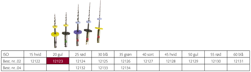 Roterende nikkeltitaniuminstrumenter, RaCe .02, 25 mm, .02/20, gul. Sterilt enkeltpakkede.