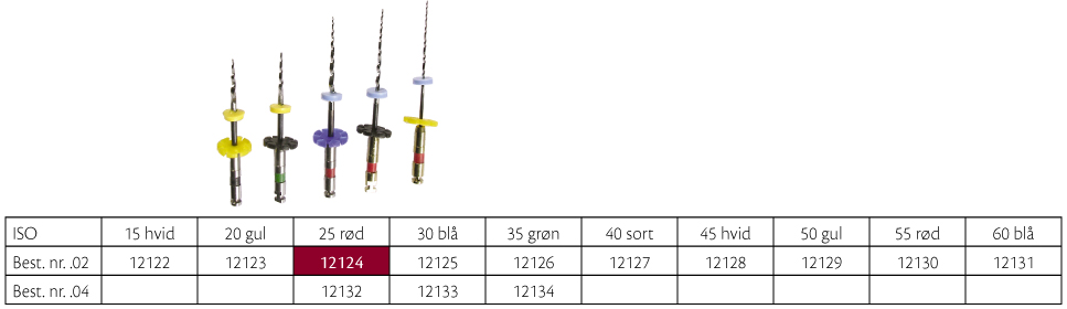 Roterende nikkeltitaniuminstrumenter, RaCe .02, 25 mm, .02/25, rød. Sterilt enkeltpakkede.