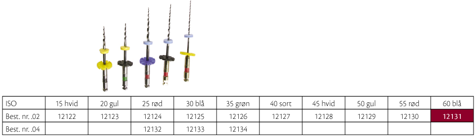 Roterende nikkeltitaniuminstrumenter, RaCe .02, 25 mm, .02/60, blå. Sterilt enkeltpakkede.