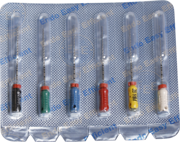 Udvidere (K-Reamers), farvekodede plastgreb, 28 mm, ass. nr. 15-40. Sterilt enkeltpakkede.