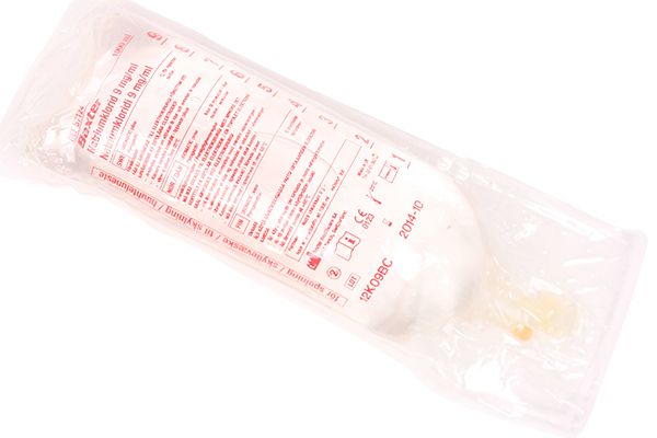 0,9% natriumklorid, sterilt saltvand, i ophængspose.