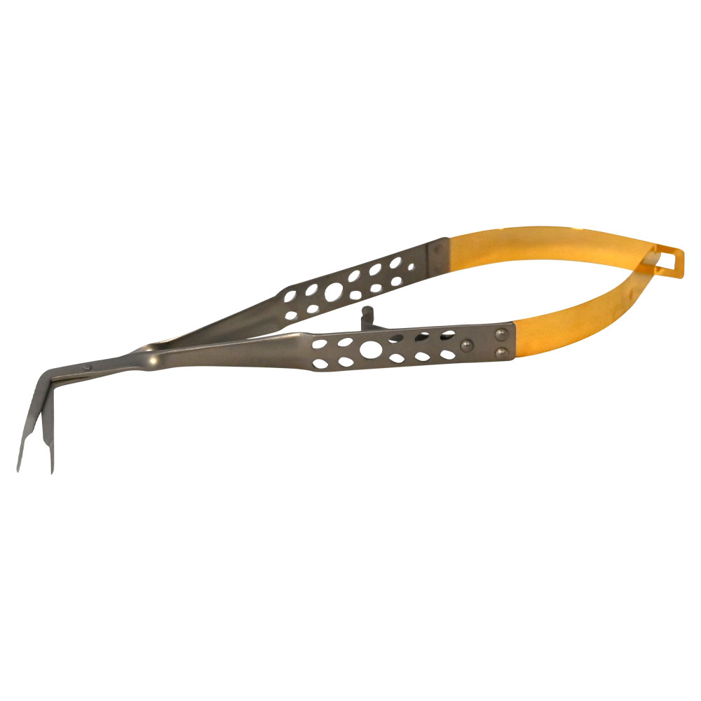 Tang til knækkede rodkanalinstrumenter, med ekstra tynde, diamantbelagte kæber, kæberne er vinklet 75 grader, optimal til brug i molarer mesialt/distalt.