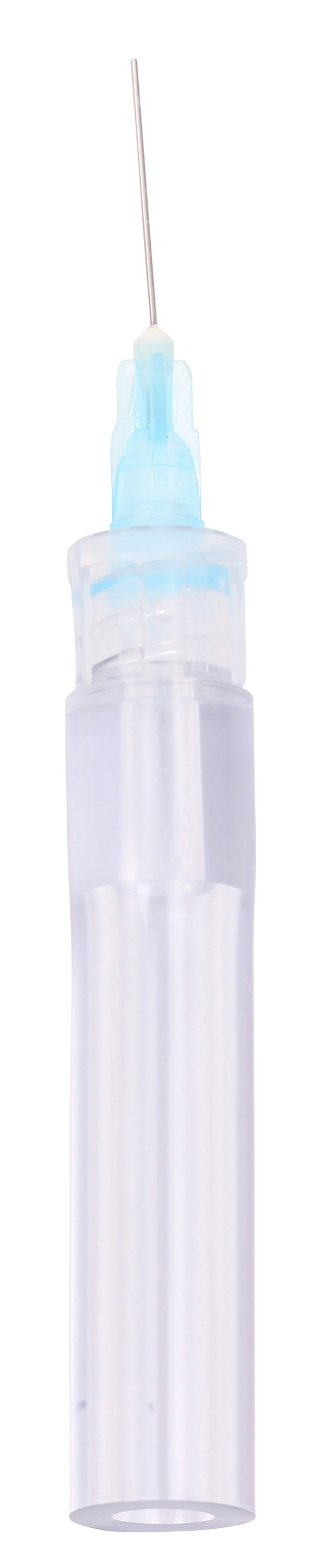 Fleksibel adapter med luer-lock fatning til at sætte på suget, med stump, blå 25G (0,5 mm) sugekanyle, så fx rodkanaler kan tørlægges, engangs.