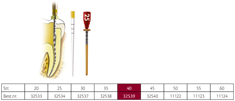 Opturatorer til forsegling af rodkanalen, så bakterievækst undgås, opvarmes i ThermaPrep Ovn i 15 sekunder før brug, ref. A0166/045, 25 mm, nr. 45, hvid.