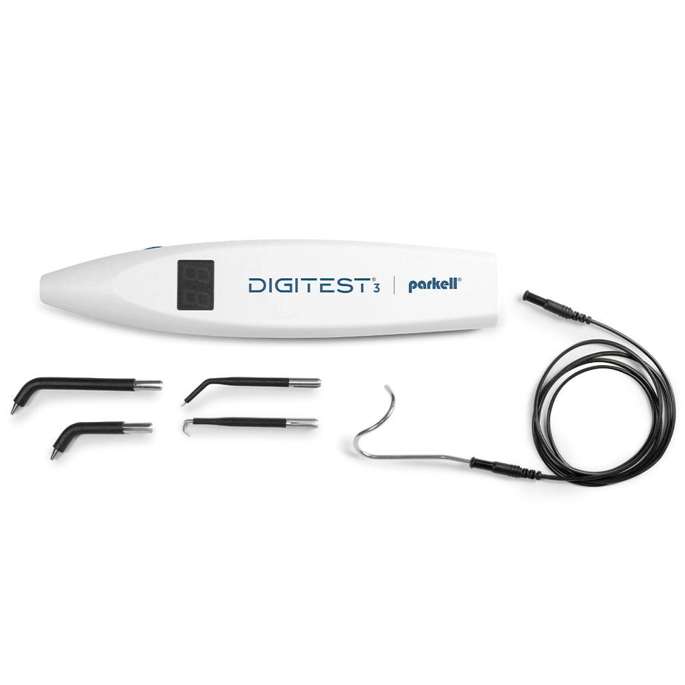 Håndholdt, transportabel og batteridrevet pulpatester til bestemmelse af pulpas vitalitet, med trykknap og digitalt display, leveres med 4 forskellige spidser.