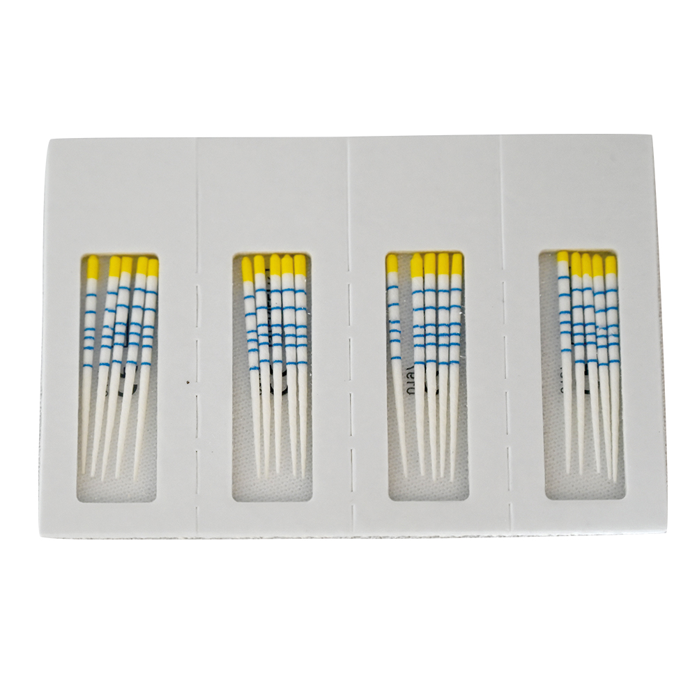 Paperpoints til Recipfile V & V Blue, har markering for 18, 20 og 22 mm og farvekodet top tilsvarende filene, 29 mm, R50 gul (50/.05). Sterilt cellepakket med 5 stk i hver celle.