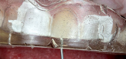 Med Injection Moulding-teknikken skaber man kompositrestaureringer ved at sprøjte injicerbar komposit ind i en klar silikoneskinne, der er placeret i patientens mund.