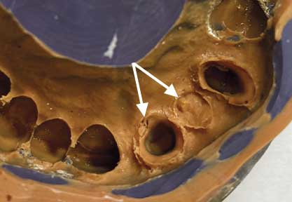 • Tjek aftrykket for luftbobler, da sådanne kan skabe uregelmæssigheder på den fremstillede model og dermed have indflydelse på pasformen af den færdige restaurering.