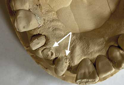 • Tjek aftryk for trækninger og ”blanke” præparationsgrænser (det blanke område opstår, hvis aftryksmaterialet ikke har været helt ”i bund” i pochen). Præparationsgrænsen skal kunne ses hele vejen rundt.