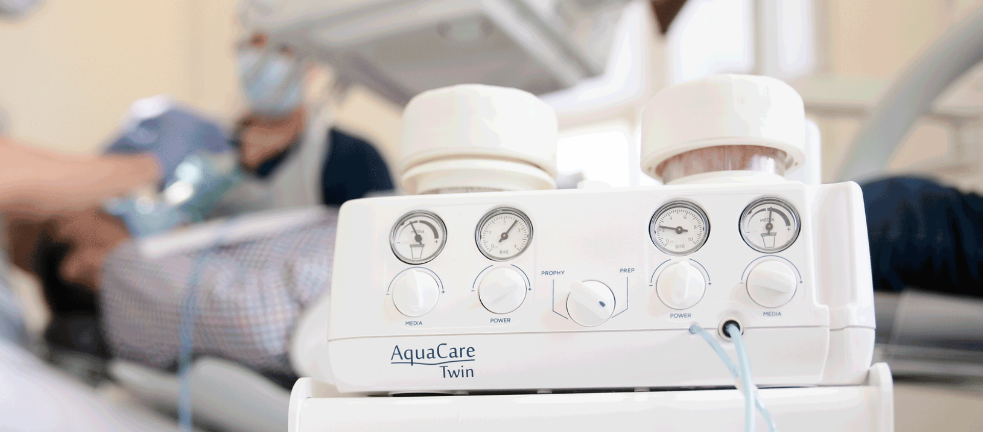 Sandblæs tandsubstansen med AquaCare sandblæseren, og opnå bedre bonding, færre omlavninger og mere tilfredse patienter. AquaCare har en helt unik egenskab i forhold til andre sandblæsere på markedet, da den blæser pulver på tænderne med et gardin af vand rundt om pulveret. Det gør det lettere at kontrollere, hvor pulveret rammer og "griser" mindre.
